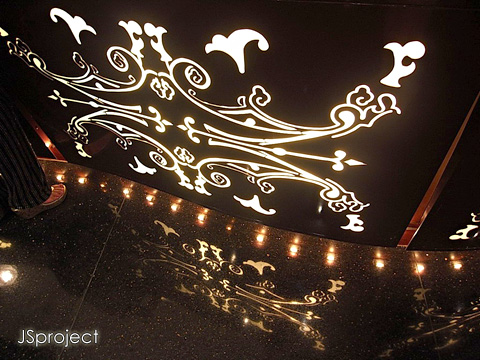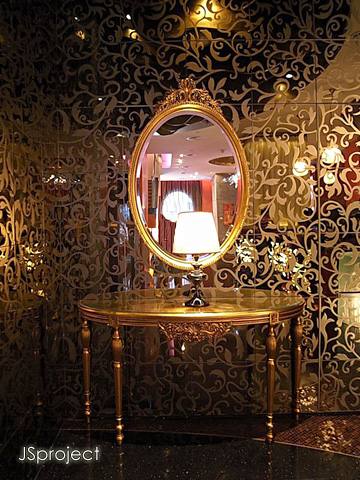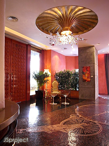 怎麼說呢?我覺得這是我看過最有趣的電梯造型了,每一次的搭乘,我都努力地想看清設計師如何佈置出這麼虛幻的空間,然而在反射和半反射鏡的交互運用下,我竟無法輕易的察覺出光源的位置,酒紅色帶有紙醉金迷氣氛的空間,給我少見的有趣電梯搭乘經驗。