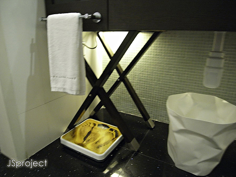 香港地狹人稠、寸土寸金,住過的飯店多半浴室可以小就小,然而,蒂樂文娜公寓的浴室雖然在整體空間上佔的比例並不特別多,但是處處可以發現設計師在挑戰人體工學與空間之間的極限。用少少的空間,滿足最大需求的同時,卻不讓使用者感到侷促。