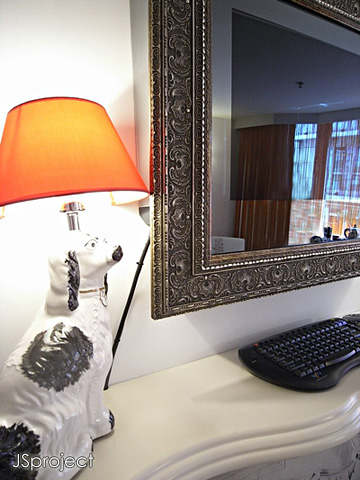 然而,整棟旅館讓我覺得「最超現實」的設計,不是lobby的誇張裝潢,也不是客房裡虛擬的壁爐,而是廁所的燈光。雖然不似客房或接待大廳色彩詭譎、大鳴大放,但浴室卻是讓我感受到設計師用力最多的一個空間。